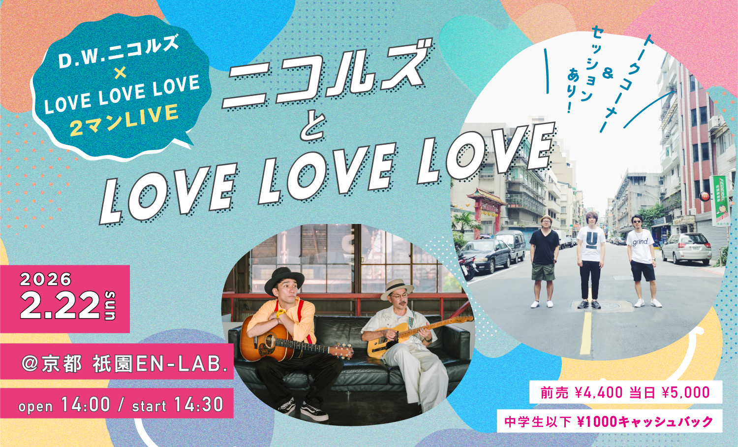 new!!!【一般発売】2/22(日)京都 祇園EN-LAB.「ニコルズとLOVE LOVE LOVE」2マンLIVE チケット一般発売開始!