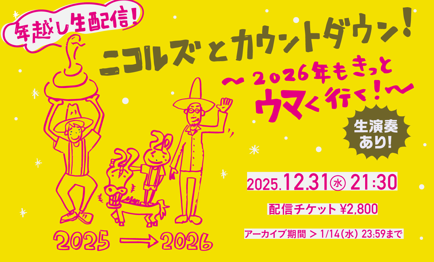 【ツイキャス】12/31(水)21:30〜 年越し生配信「ニコルズとカウントダウン!〜2026年もきっとウマく行く!〜」決定!