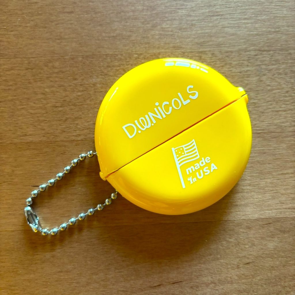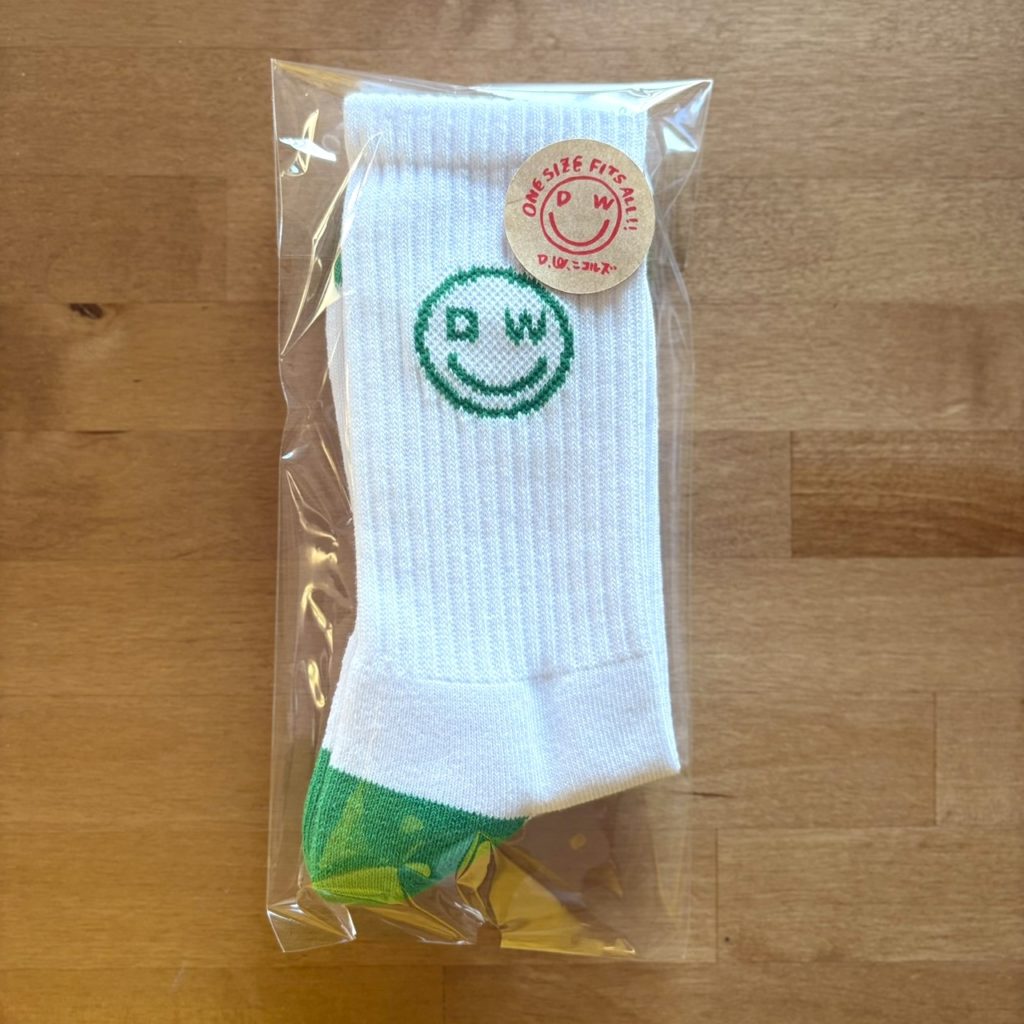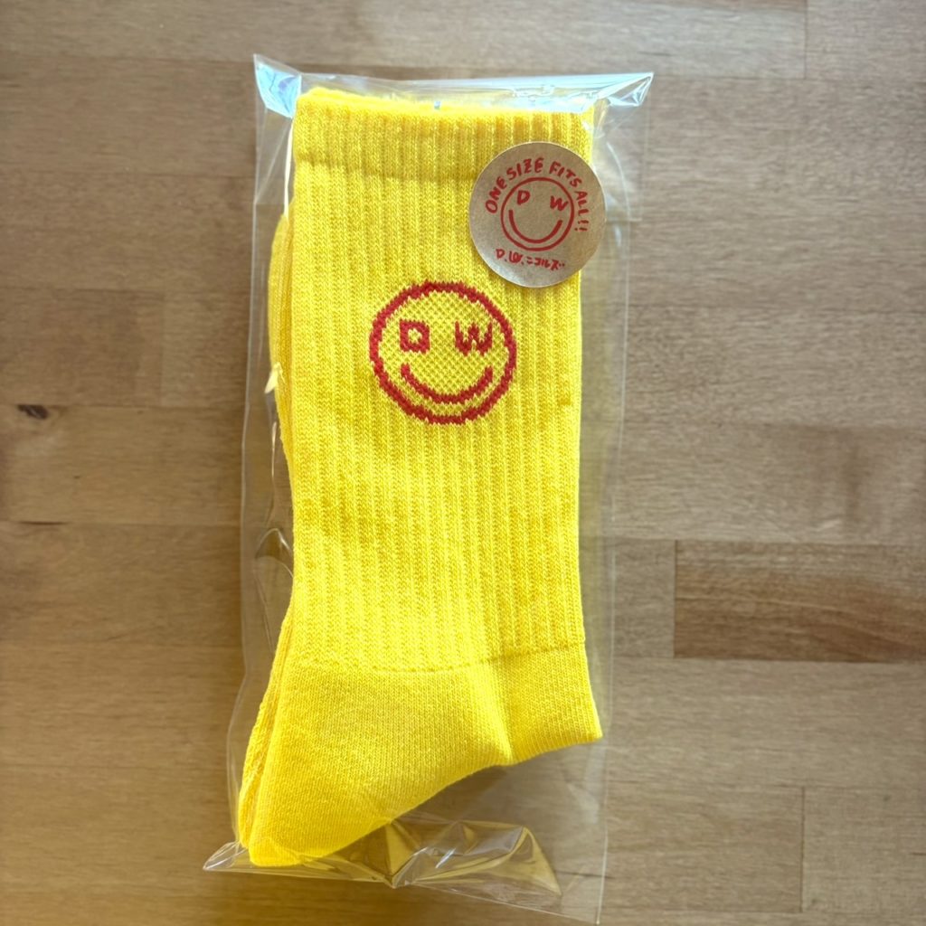 DWスマイルと「D.W.Nicols」ロゴ(わたなべだいすけ手描きデザイン)が表裏で入っています。